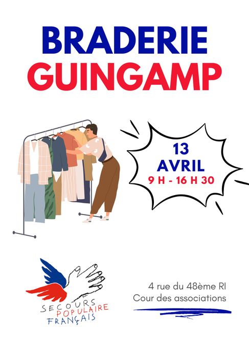 Le comité de Guingamp du Secours populaire français vous invite à sa braderie du samedi 13 avril.