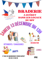 - Grande braderie au local du SPF (Maindigour) samedi 13 décembre matin.