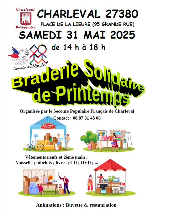 L’antenne de Charleval organise une braderie le samedi 31 mai de 14h à 18h.
