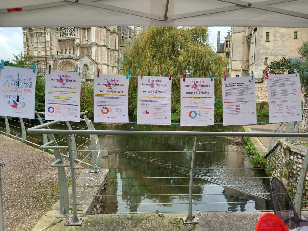Rassemblement « Journée Mondiale du Refus de la Misère », sur la Place du Miroir d’eau au centre ville d’Evreux. Evénement organisé par la Commission « Pauvreté Précarité », annoncé dans les colonnes du journal local. Merci Gérard.