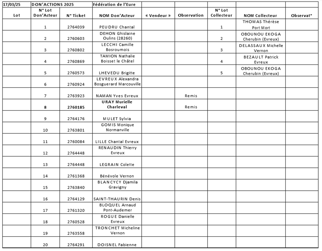 Le 17 mars a eu lieu le tirage de la tombola solidaire « Don’Actions » de l’Eure, dans les locaux de la Fédération à Guichainville.