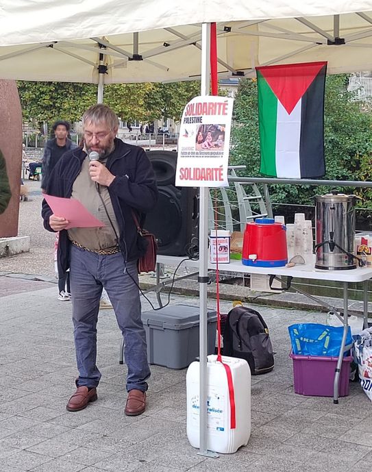 - Eric, responsable de la Commission « Solidarité Monde » a relaté l’historique de notre partenariat avec le Secours médical palestinien PMRS. Il a ensuite informé des actions sur place et de l’aide financière apportée par le Secours Populaire Français.