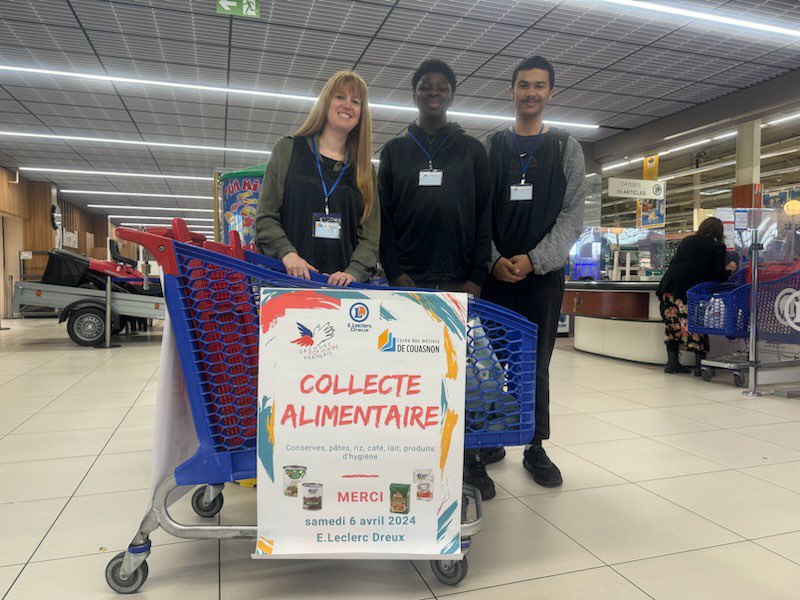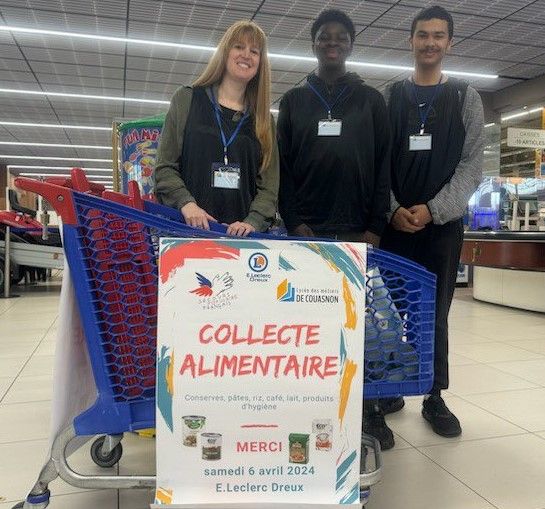 Un grand merci à Maïssa, Zinedine, Hassan, Iness, Dayan et Mme Ait Errami du Lycée De Couasnon pour la collecte qu’ils ont organisé le samedi 06 avril au magasin E.Leclerc de Dreux.