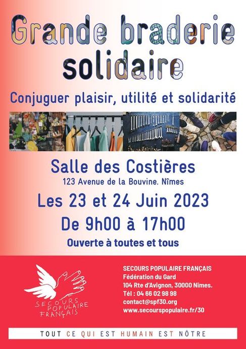 Grande braderie solidaire les 23 et 24 juin, salle des Costères à Nîmes