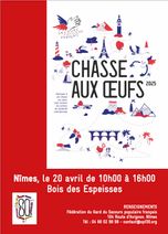 Cette année dans le Gard trois chasses aux oeufs sont organisées : dimanche 20 avril à Alès au Parc de la Tour Vieille – dimanche 20 avril à Nîmes au Bois des Espeisses, de 10H à 16h et lundi 21 avril à Anduze au Parc des Cordeliers de 9h à 17h. Vous pouvez régler d’avance en suivant ce lien :https://www.helloasso.com/associations/secours-populaire-francais-federation-du-gard/evenements/chasse-aux-oeufs