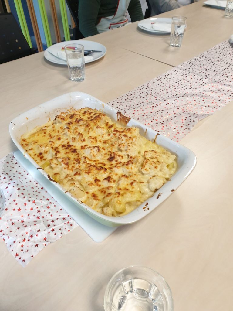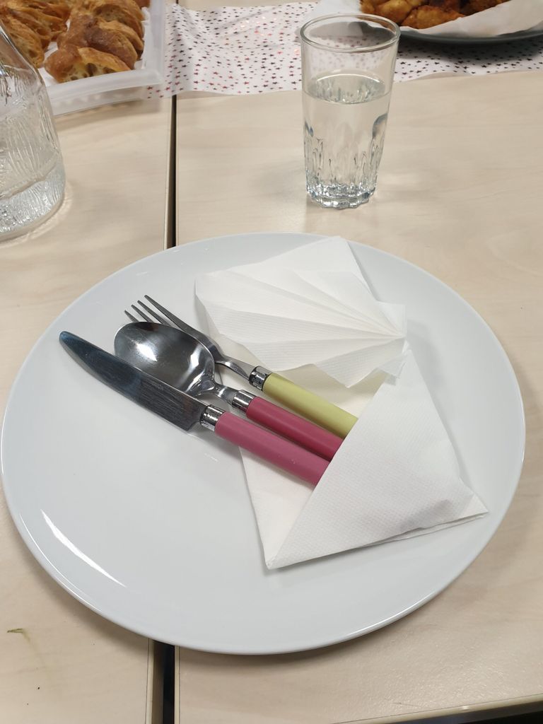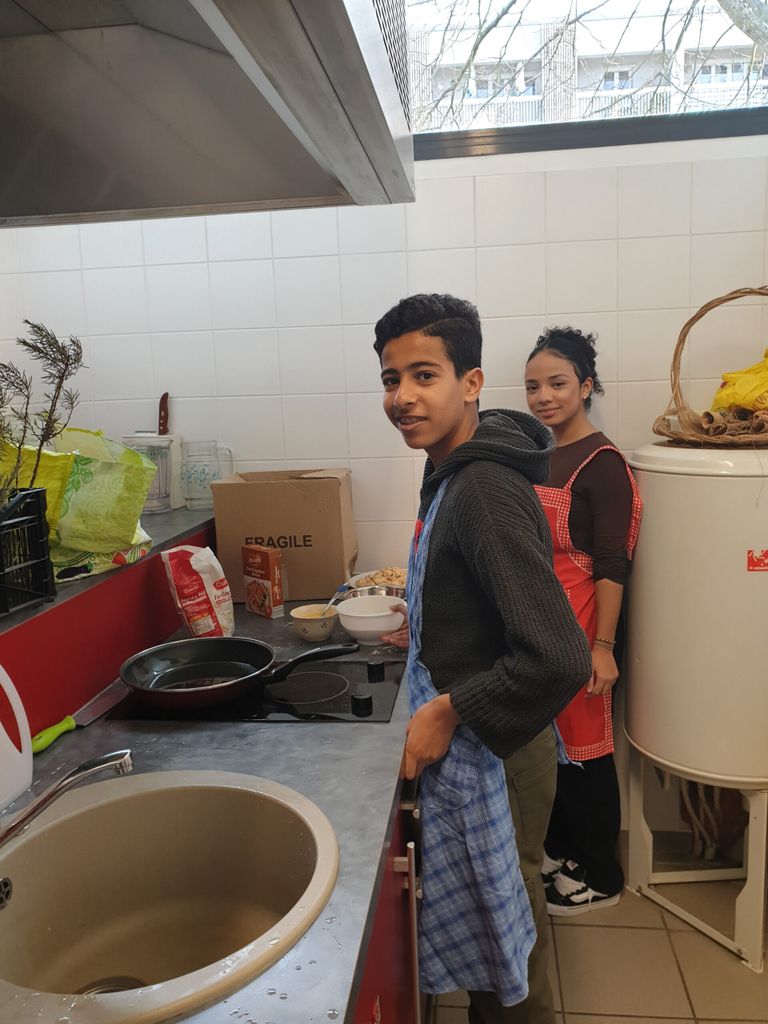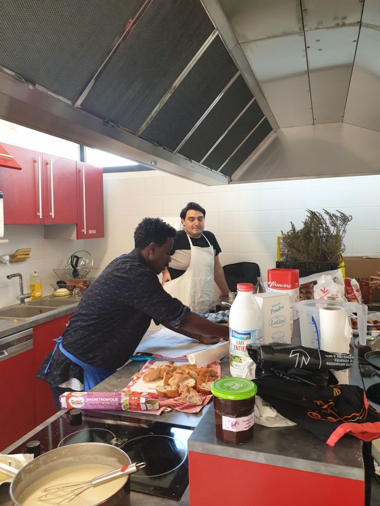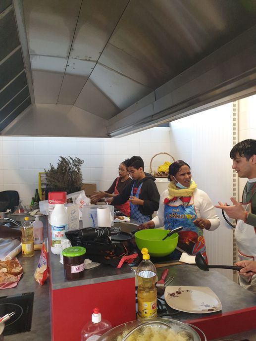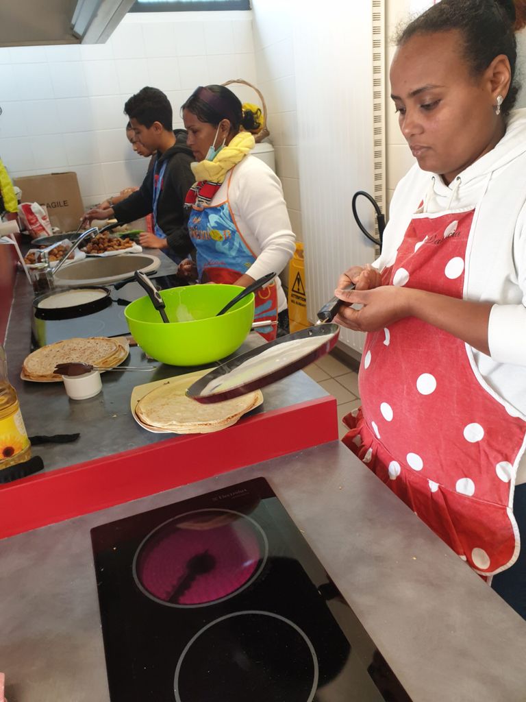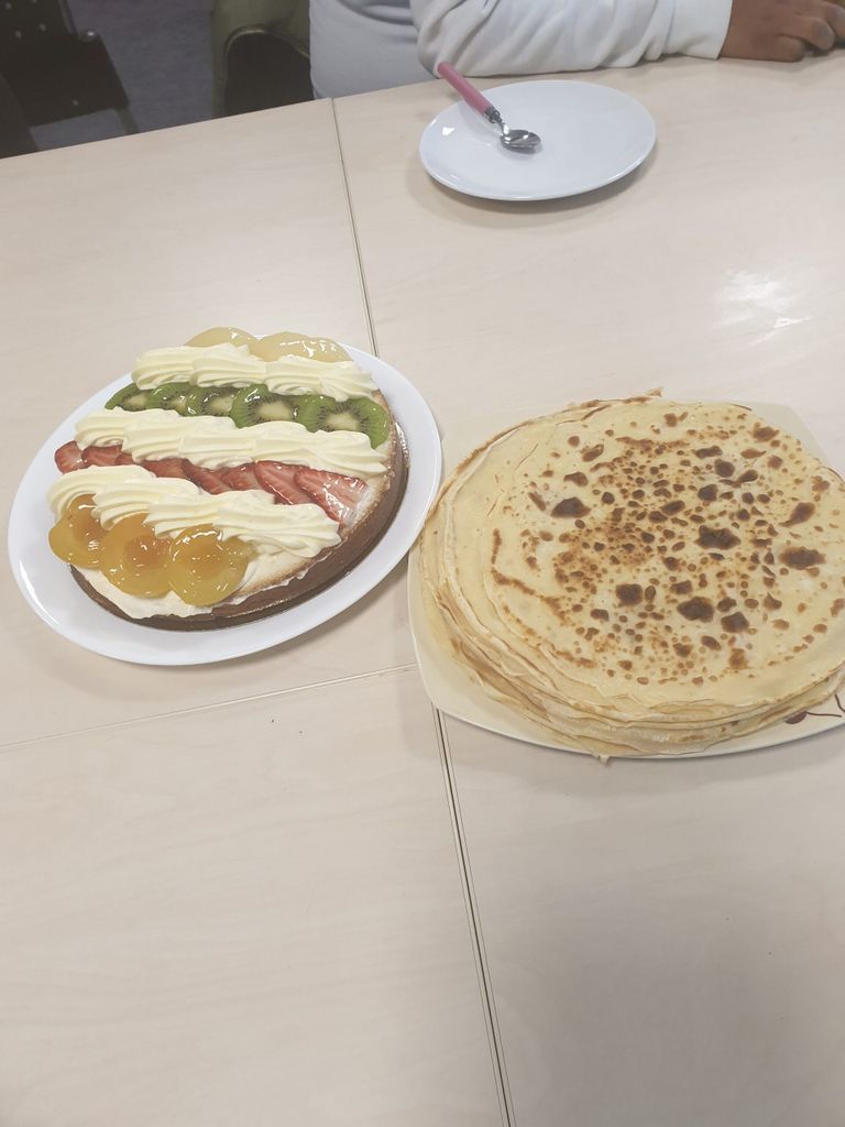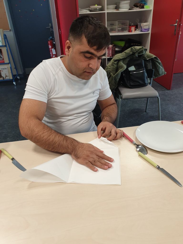 Cette belle équipe est venue participer à la confection de pain grillé à l’huile d’olive, gratin de choux fleur, et crêpes. Kamal a préparé de beaux pliages de serviettes dans chaque assiette lors du repas qui a suivi, couronné d’un bon gâteau offert par l’un des membres.