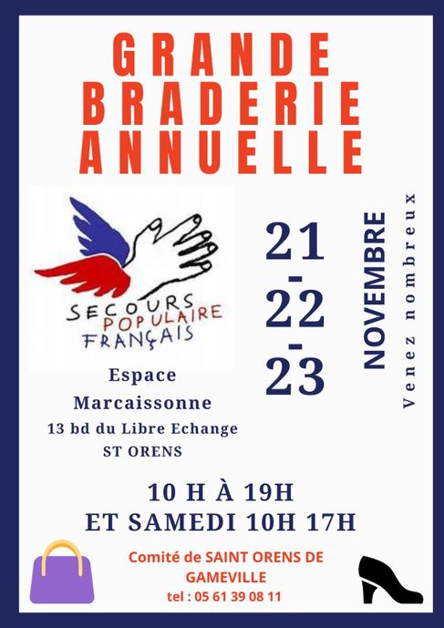 En proposant au public des articles de qualité à petits prix (vêtements, chaussures, maroquinerie, accessoires …), le secours populaire souhaite récolter des fonds qui financerons ses actions de solidarité sur la trentaine de communes qu’il couvre autours de ST-ORENS.