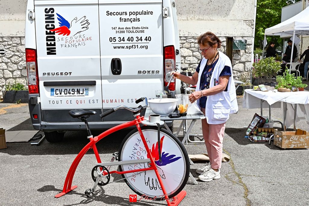 Pour sensibiliser au bien manger et à l’importance du sport pour la santé, nous avons pu compter sur l’équipe santé avec son célèbre vélo-mixeur qui fabrique des jus de fruits à condition de pédaler avec énergie.