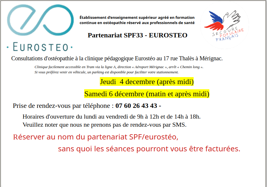 Consultations d’ostéopathie à la clinique pédagogique Eurostéo