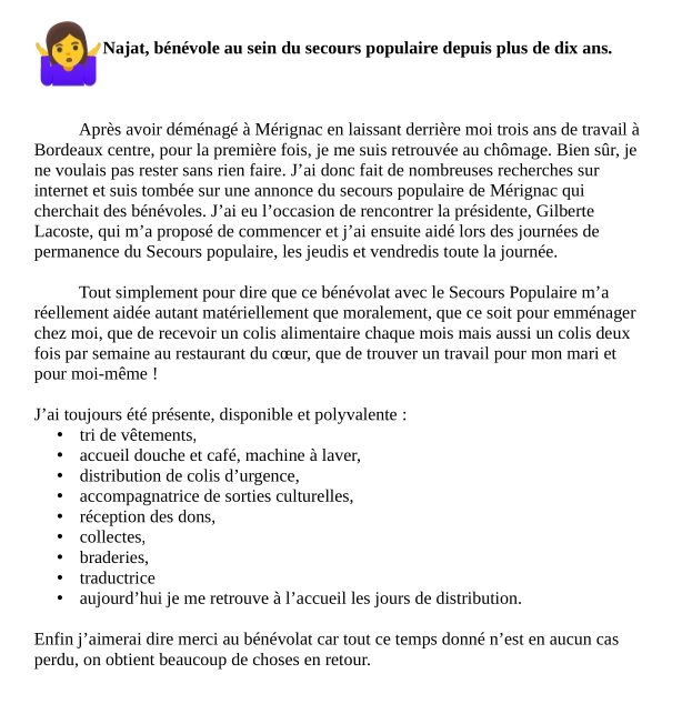 Témoignage Adam lors de la fête des 80 ans du Secours Populaire à Bordeaux :