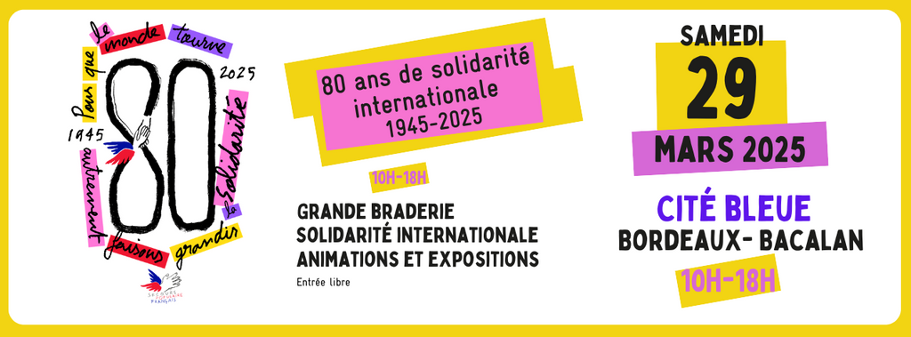 En 2025, l'association célèbre ses 80 ans d'actions et d'engagement pour un monde plus juste et plus solidaire. Une grande journée festive aura lieu à Bordeaux à la Cité Bleue dans le quartier Bacalan, samedi 29 mars pour marquer le coup !