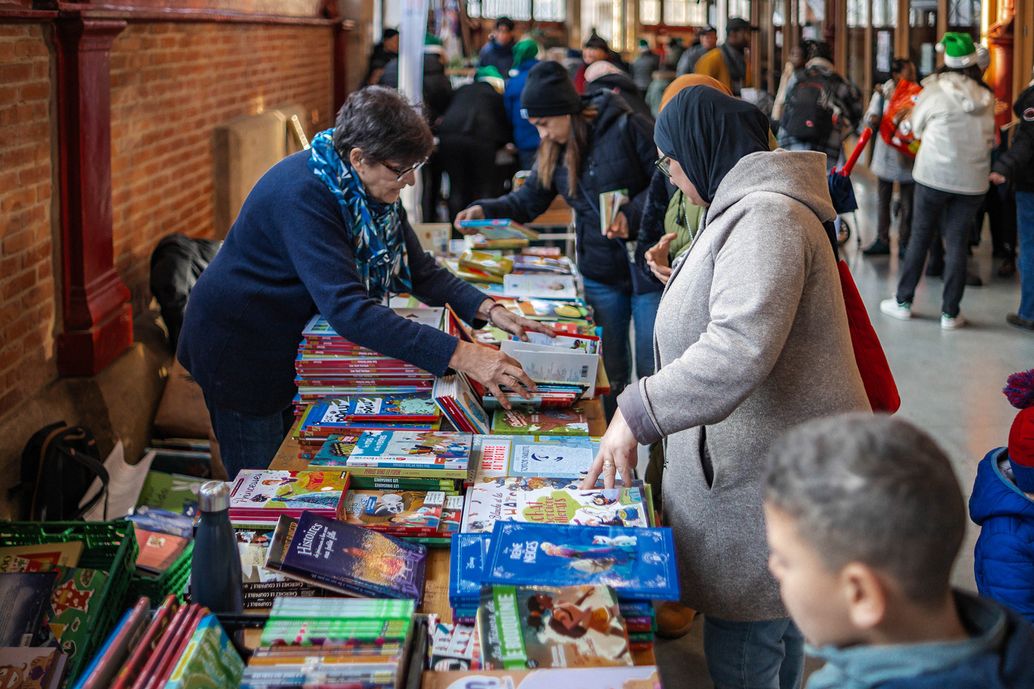 Distribution de livres à l'occasion de l'Arbre de Noël aux Halles des douves à Bordeaux - décembre 2024