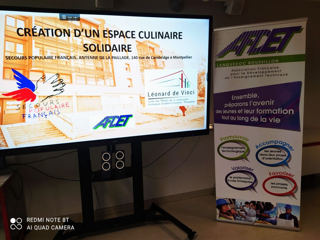 Depuis la rentrée, les élèves du Lycée Léonard de Vinci des sections BAC PRO et BTS (sections architecture du bâtiment et étude économique de la construction), travaillaient avec leurs professeurs sur les valeurs du Secours populaire et des plans d’aménagement de l’espace culinaire solidaire de l’antenne de La Paillade. Un travail qui fait partie du projet pédagogique de l’établissement.