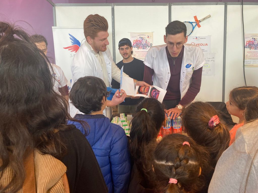 Les étudiants de 5ème et 6ème années de la Faculté d’Odontologie de Montpellier ont partagé le stand du Secours populaire afin de faire de la prévention en matière de santé orale, auprès des plus jeunes.