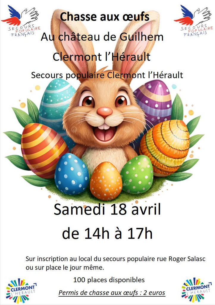 Le Secours populaire de Clermont l’Hérault vous invite à une après-midi festive en famille ! 🐰