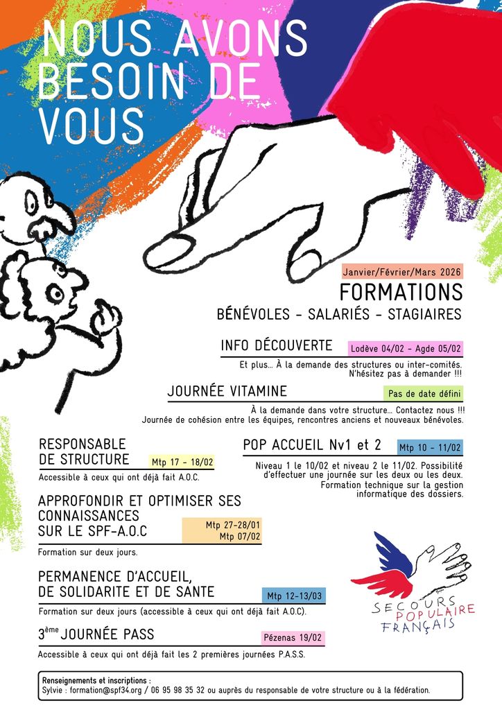 Contact pour renseignements et inscriptions : Sylvie : formation@spf34.org / 06 95 98 35 32