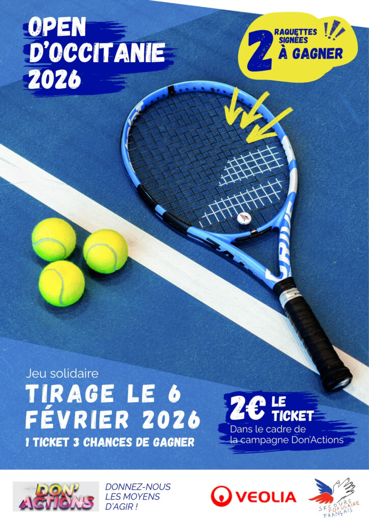 Dans le cadre du Don’actions 2026 et de l’Open Occitanie, Jeu solidaire pour gagner raquette de tennis dédicacé