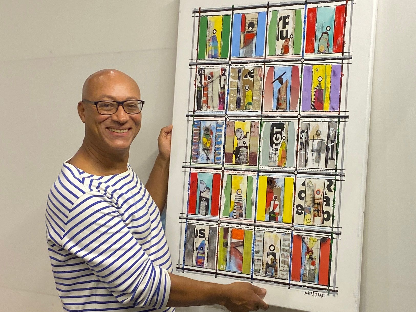 Je m’appelle Sadik Farabi. J’ai une formation de géographe-cartographe, car mes parents ne voulaient pas que je fasse les Beaux-Arts. Ma démarche (peinture et sculpture) allie, dans un équilibre que je trouve heureux (je poursuis encore aujourd’hui en parallèle mes deux métiers), cette connaissance scientifique et mes désirs artistiques. Je vis au croisement de mes deux rêves. J’aime le voyage, la découverte de l’autre, le respect de la différence.