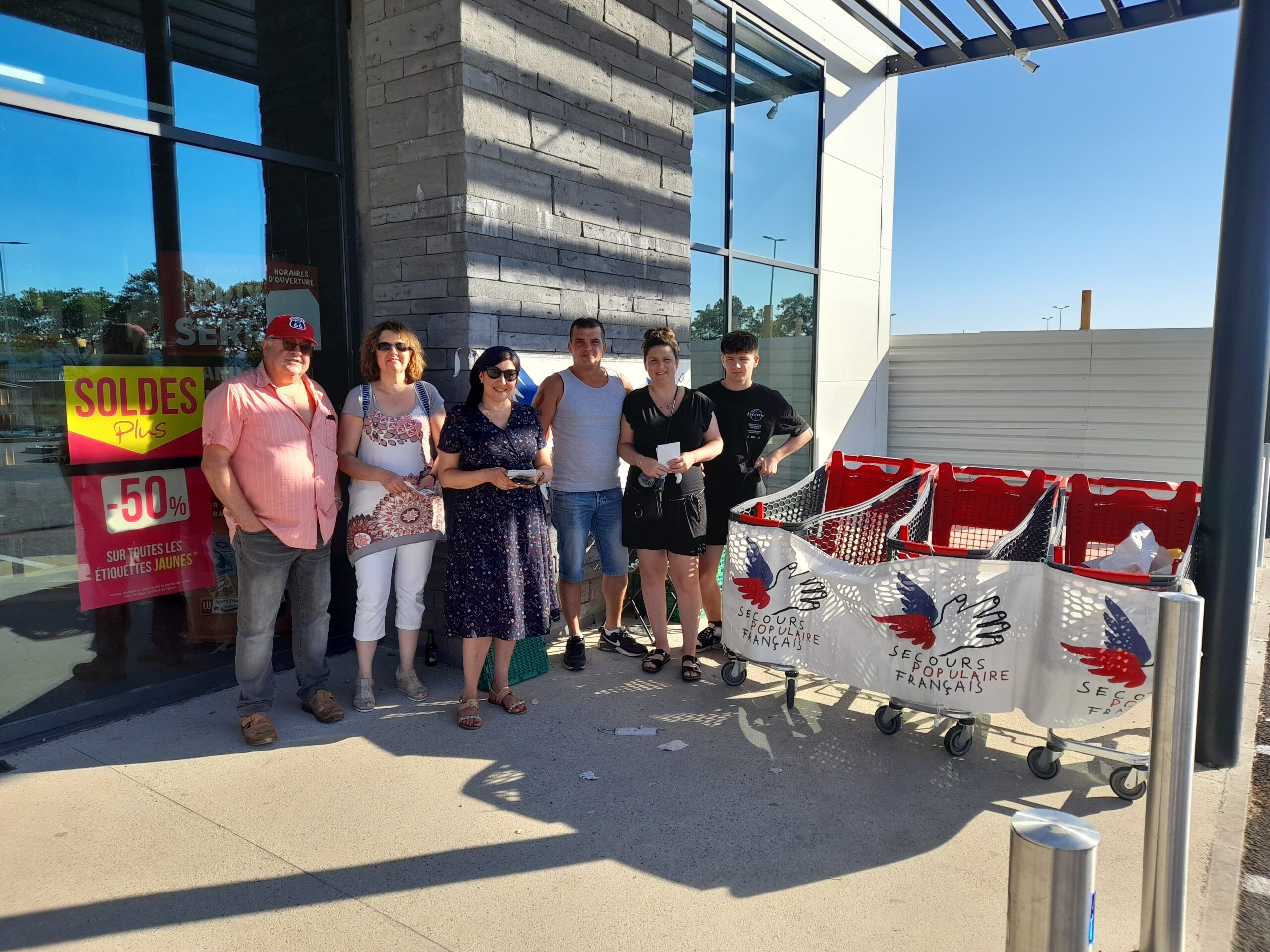 Fin juin, les bénévoles et les personnes accueillies du SPF de Paulhan ont réalisé une collecte alimentaire à l’entrée du magasin Carrefour.