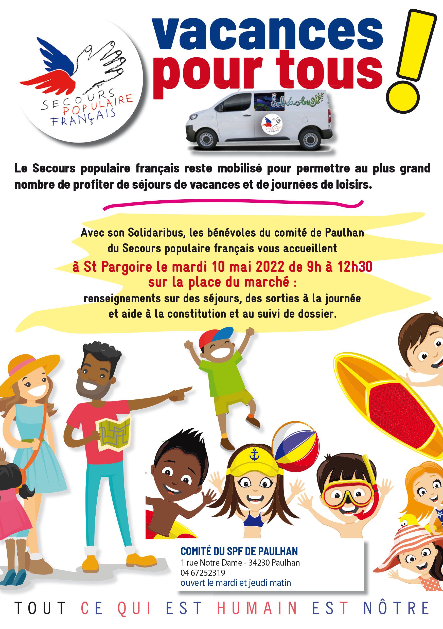Les bénévoles du comité du SPF34 de Paulhan et de la commission vacances organisent deux matinées d’information « vacances », les 10 et 13 mai de 9h à 12h30 sur la place du marché de Saint-Pargoire et du Pouget, deux villages importants éloignés de leur comité.