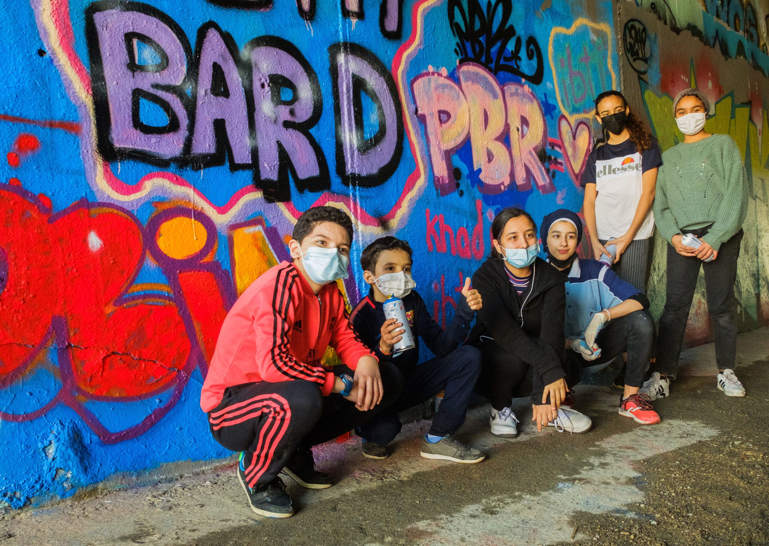 Amir son petit frère âgé de 8 ans complète « c’est la première fois que je fais du graph, je trouve ça amusant de dessiner, grapher, les couleurs, sur un mur… C’est trop bien ! ». Amir lui a choisi de dessiner une série de lettres « Y.H.T.E », qui représentent les initiales des prénoms des personnes de sa famille.