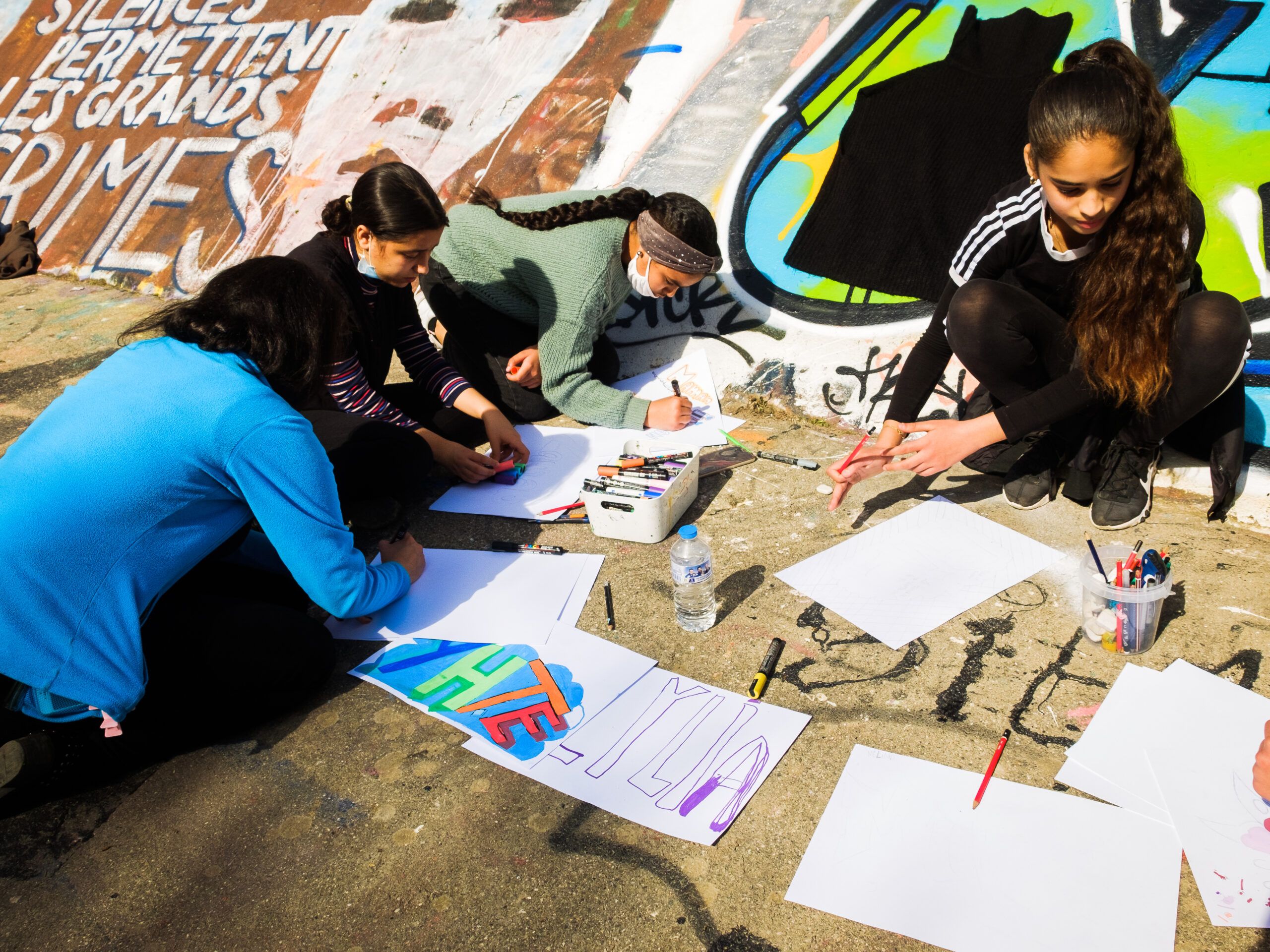 - Ateliers d’initiation au Street Art (Posca, graffiti sur bâche en extérieur) dans les locaux de la Fédération du Spf34 à Montpellier