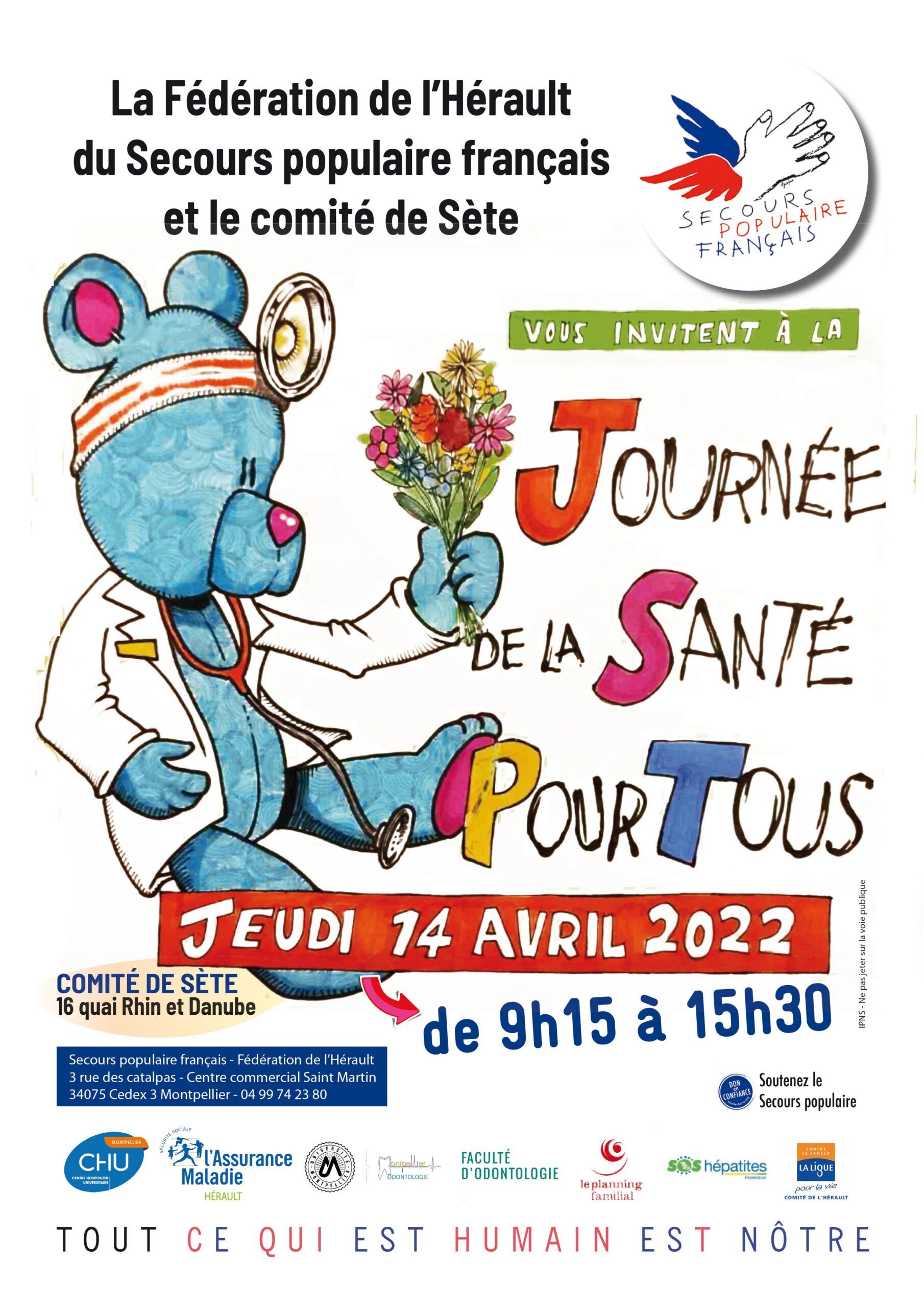 La commission Santé de la Fédération de l’Hérault du Secours populaire français a organisé une « Journée de la Santé pour tous » le jeudi 14 avril dernier de 9h30 à 15h30 au comité de Sète.