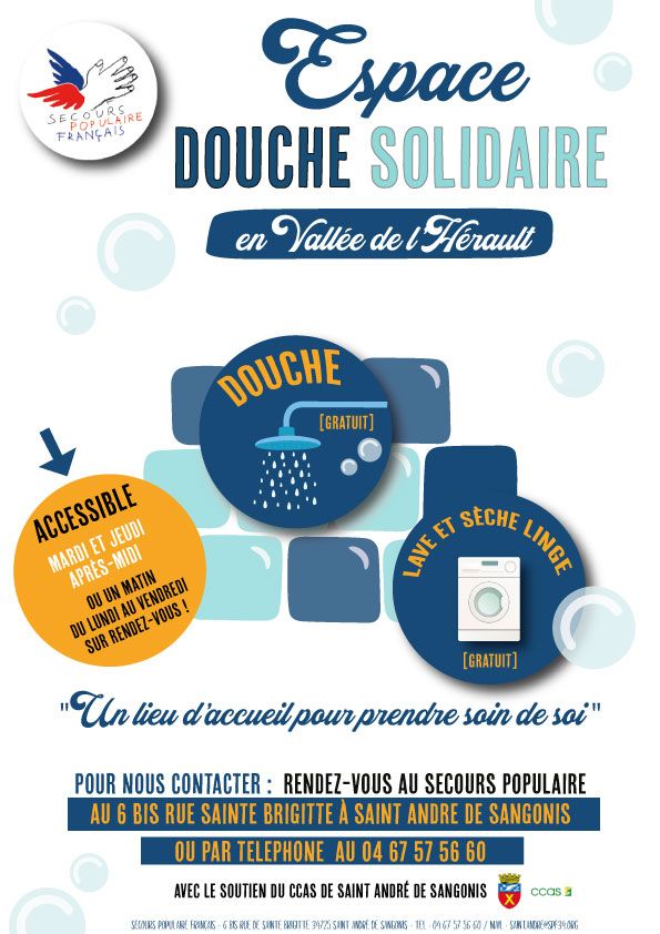 Après plusieurs mois de chantier, l’espace hygiène est désormais en fonction et opérationnel. Logé à quelques mètres en face du local de la permanence du SPF de Saint André de Sangonis, il permet aux personnes de la rue ou mal-logés de prendre une douche ou de faire la lessive de leurs vêtements.