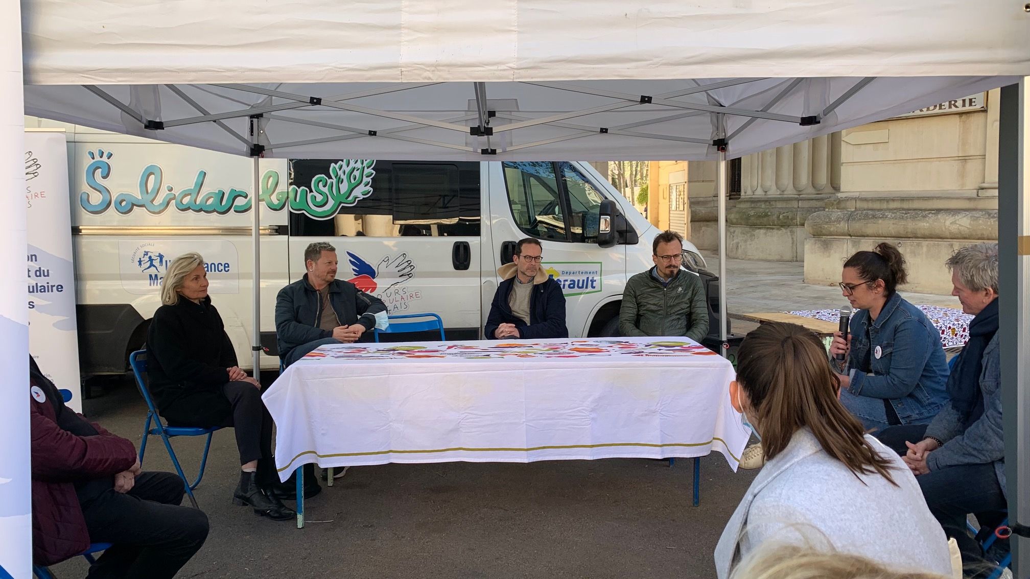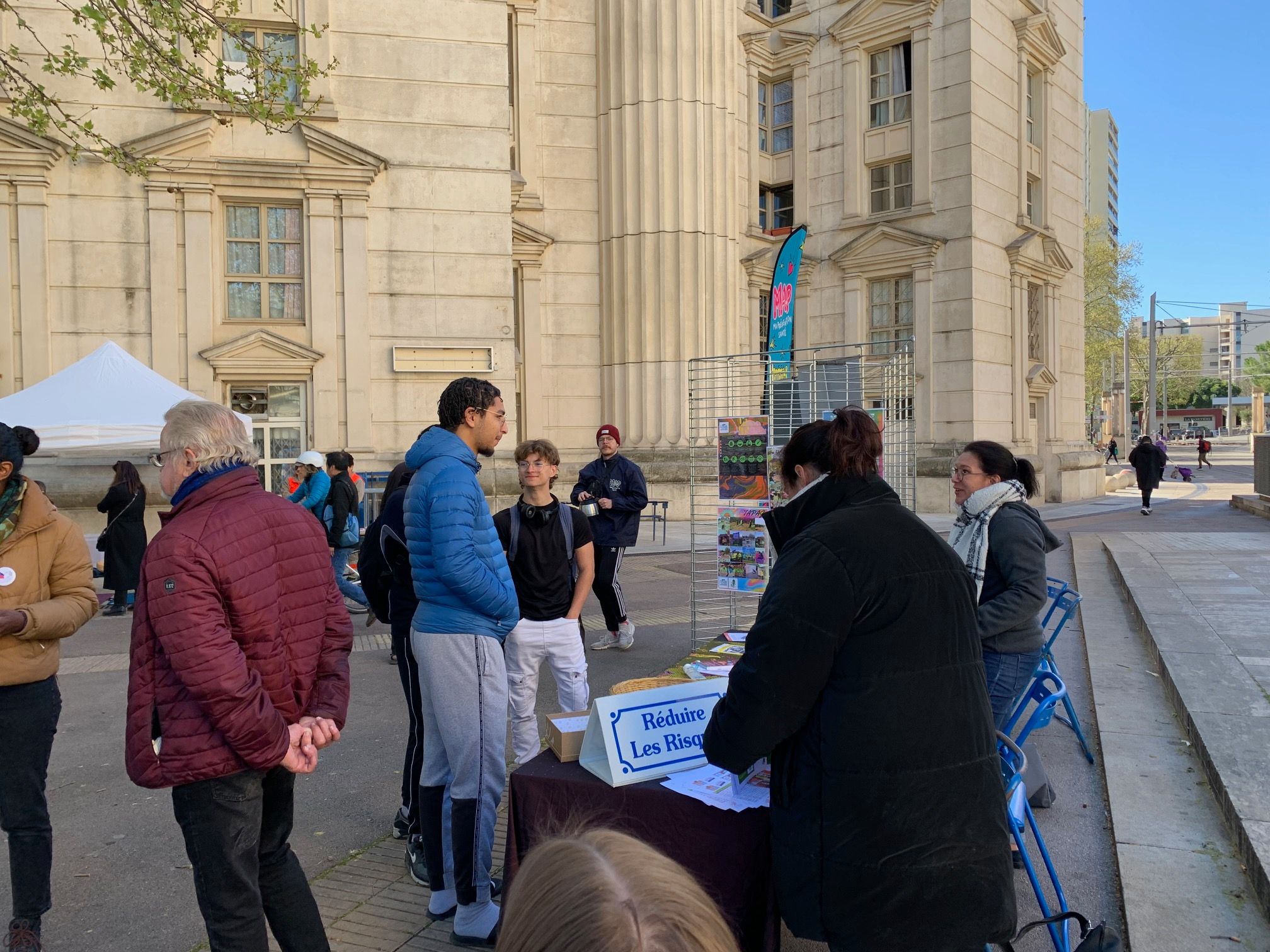 Tous les partenaires étaient présents pour nous accompagner dans cette journée de lutte contre le renoncement aux soins : le Planning familial, la CPAM 34, SOS Hépatites et la COHEP Occitanie (Réseau Hépatites), le centre de vaccination Bouisson Bertrand, le CAARUD La Boutik (Réduire les risques des usagers de drogues), Via Voltaire, la Ligue contre le Cancer et bien sûr la MaP de la Mairie de Montpellier, unité mobile de prévention.