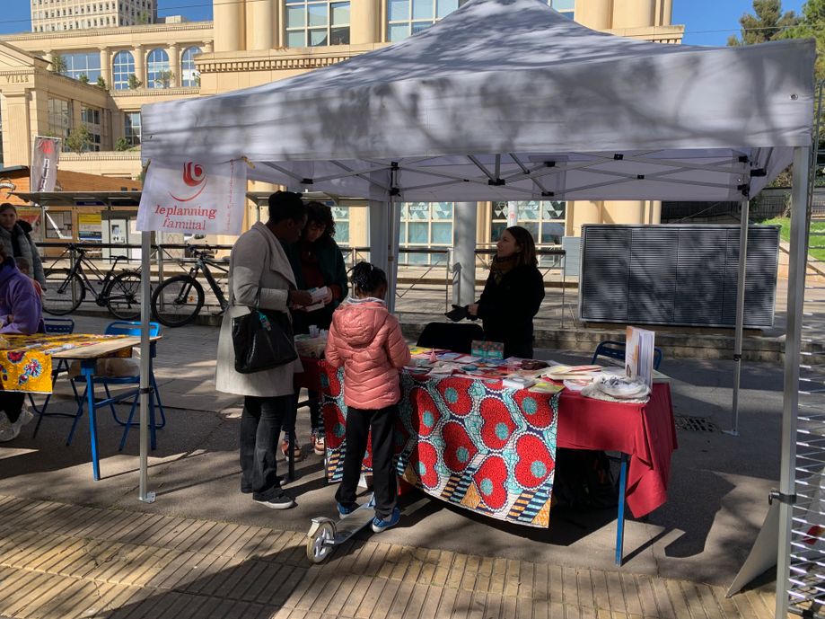 Stand du Planning Familial avec des personnes rencontrées sur le stand