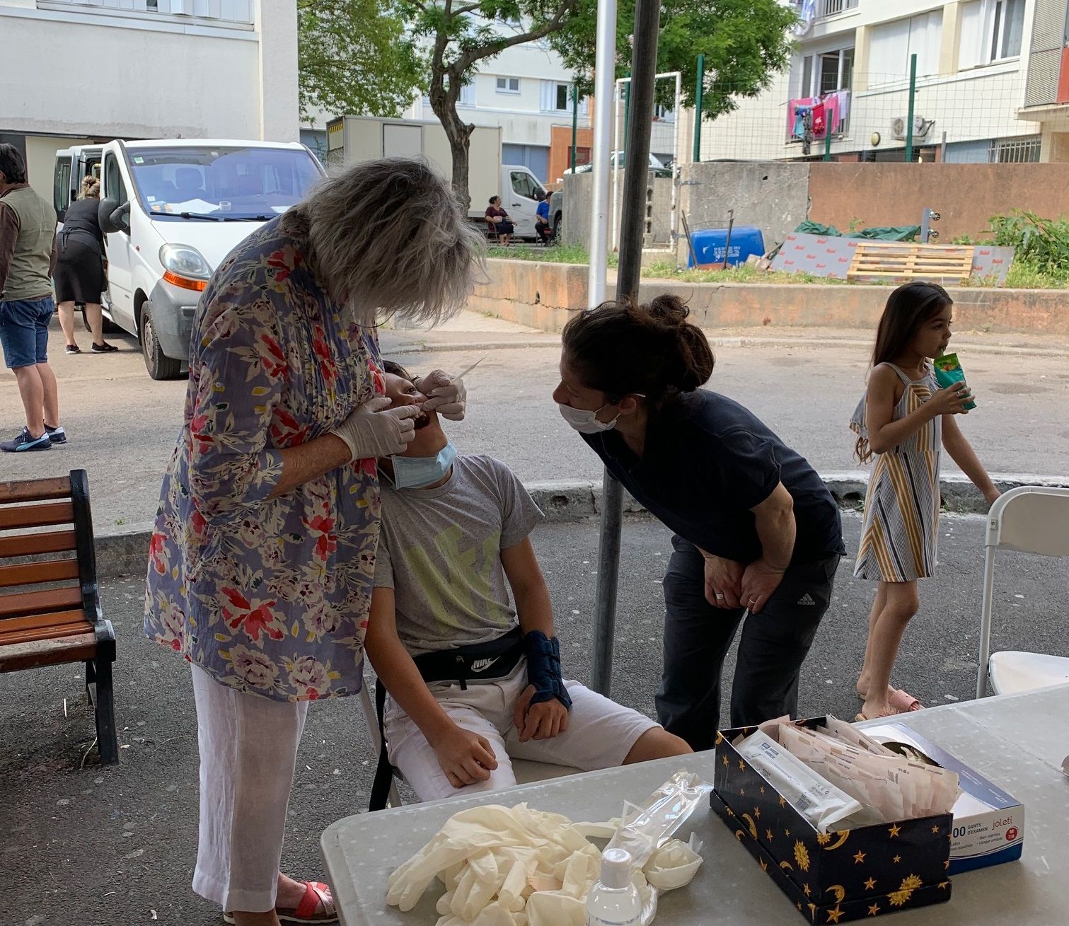 Le 9 juin 2021, la commission Santé a invité ses partenaires à une action de santé "hors les murs des antennes du SPF de Montpellier », dans la cité Aiguelongue 2.