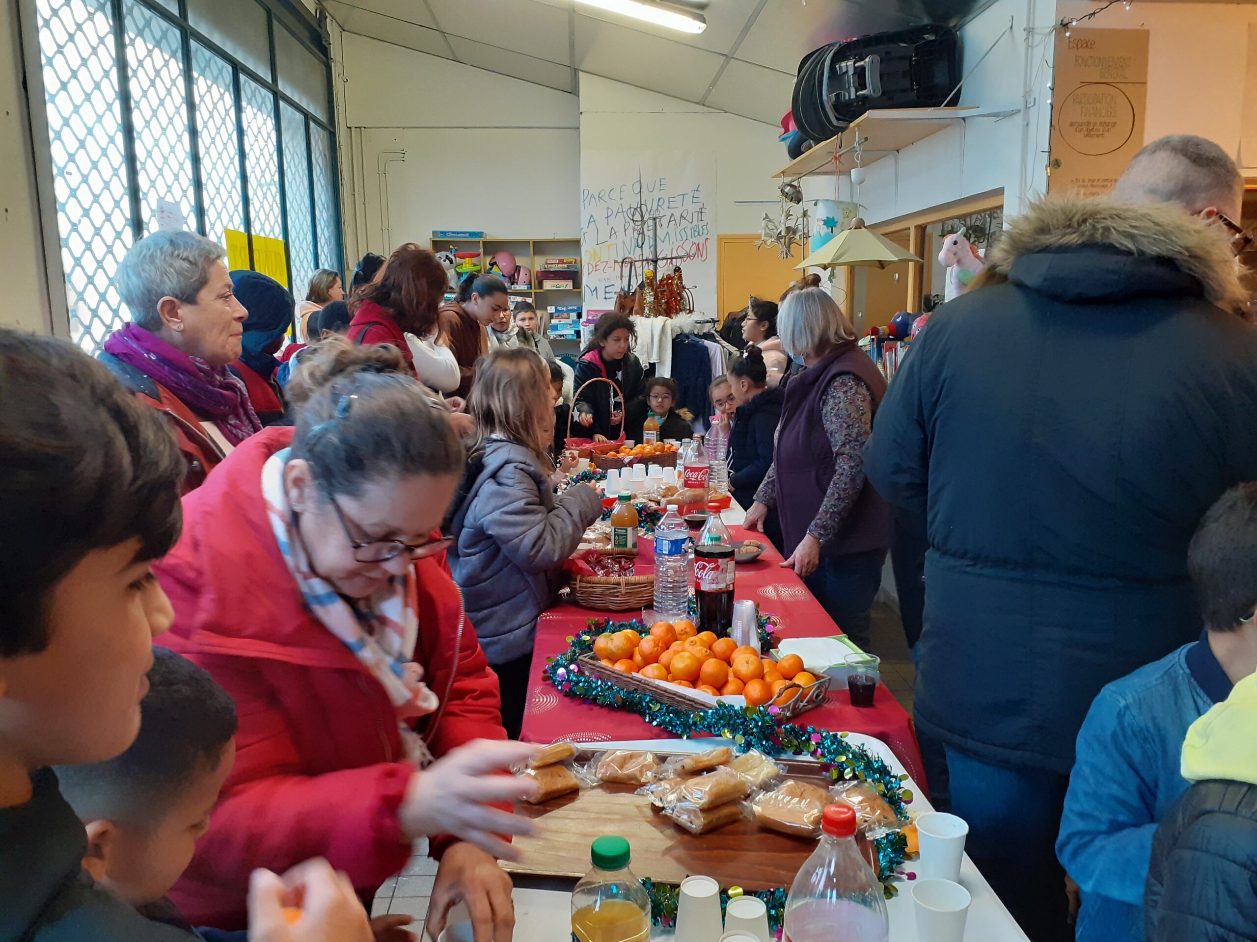 Toutes les familles accueillies n’ont pu être présentes à cette fête, ainsi les bénévoles se sont organisés pour offrir des jouets aux parents lors de la distribution alimentaire. Cette dernière a eu lieu tous les autres jours de la semaine. Ainsi tous les cadeaux ont pu être remis à temps (Avant Noël).
