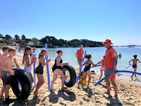 - Baignade & jeux de plage : Les jeunes ont pu se rafraîchir dans les eaux cristallines du Golfe du Morbihan et profiter d’un moment de détente et d’amusement sur le sable fin de l’île