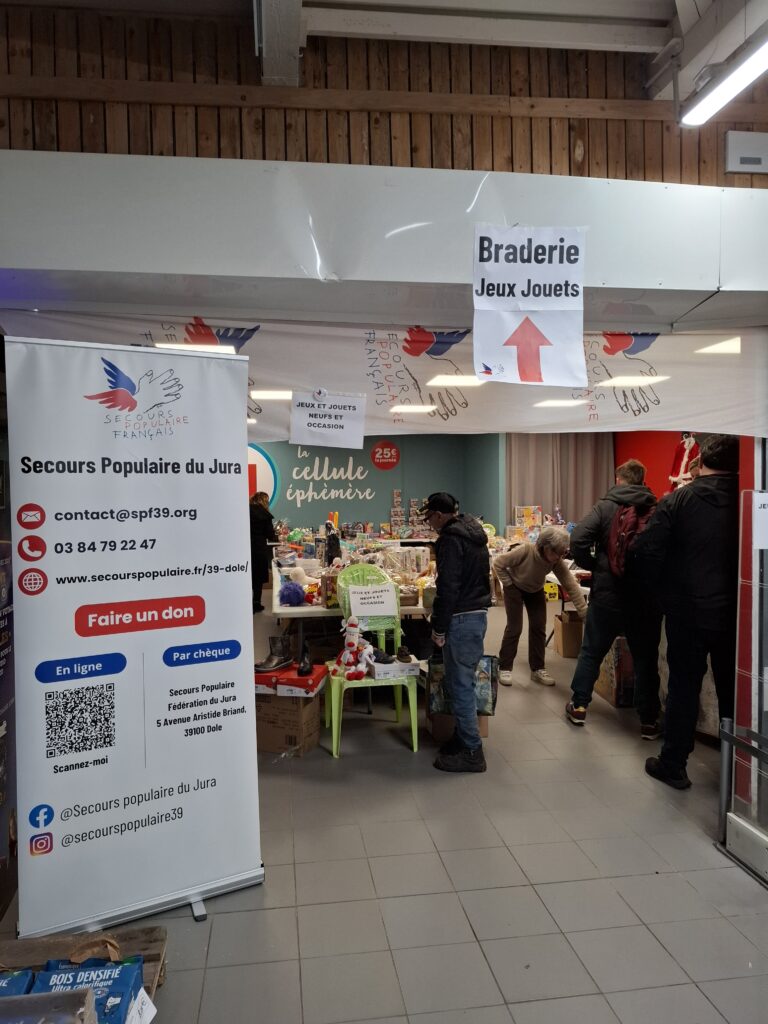 Du 8 au 12 décembre, les bénévoles du Secours populaire du Jura étaient présents dans la galerie marchande de Super U Tavaux pour proposer une braderie de Noël !