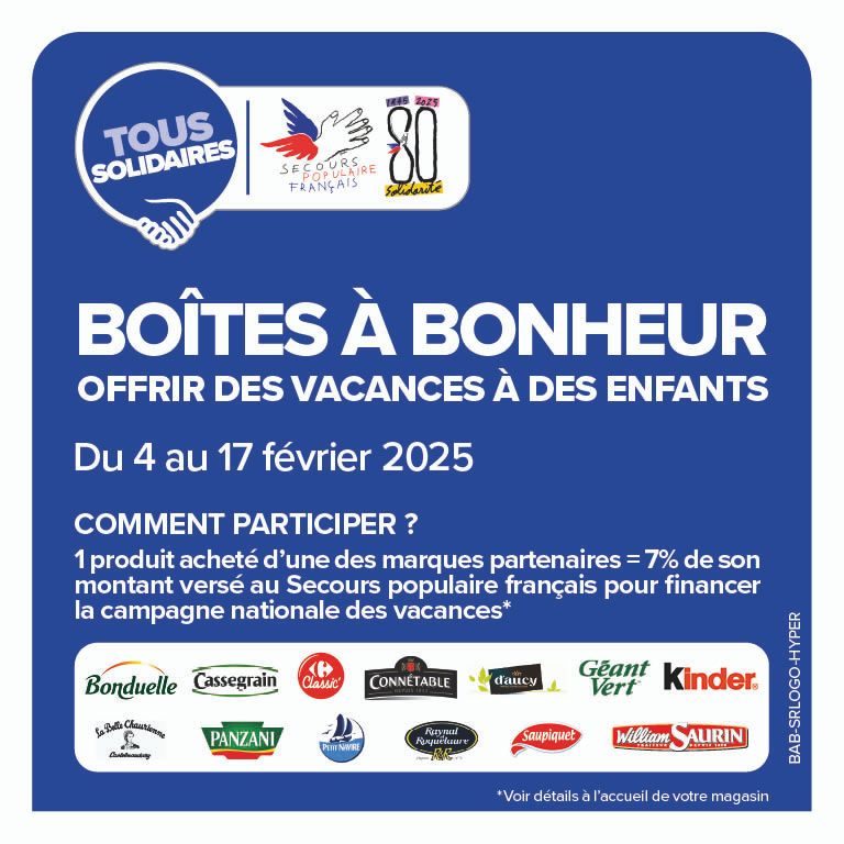 Les « Boîtes à Bonheur » sont destinées à collecter des fonds pour la campagne Vacances du Secours populaire français. Elles ont ainsi contribué en 2024 à faire partir 50 000 enfants au bord de la mer, à la montagne ou encore aux parcs d’attractions.