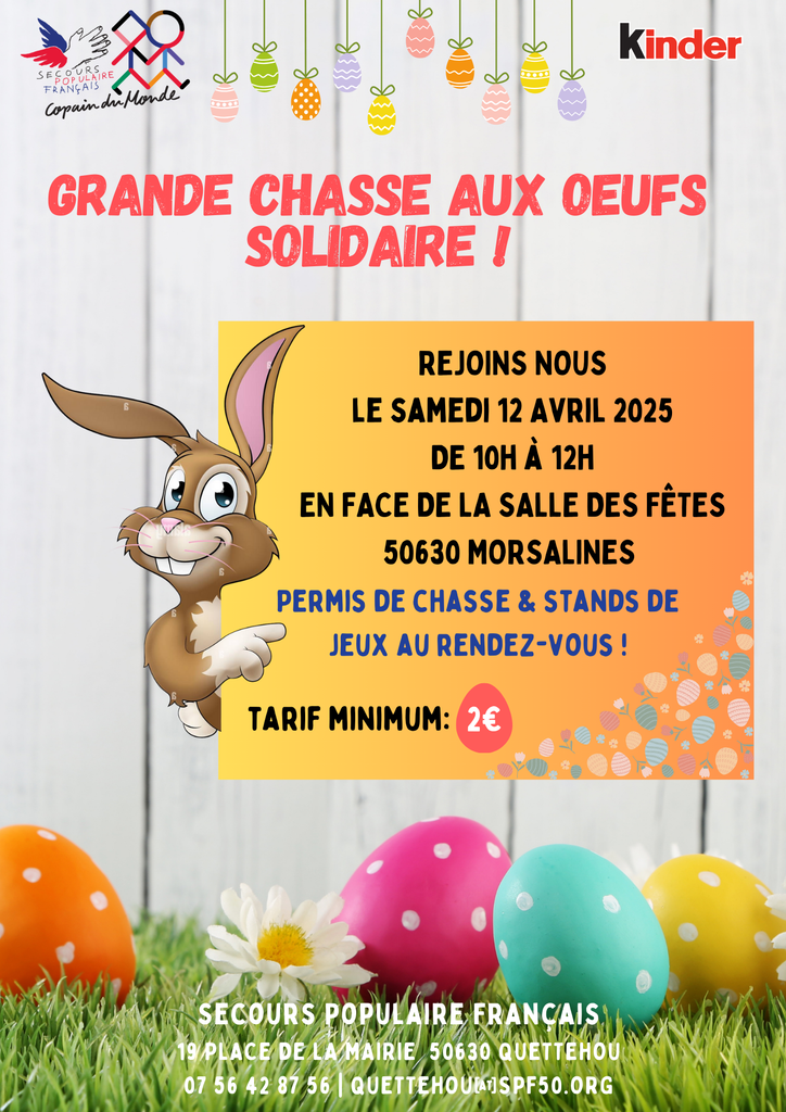 Cette année encore l’antenne de Quettehou du Secours populaire organise une grande chasse aux œufs.