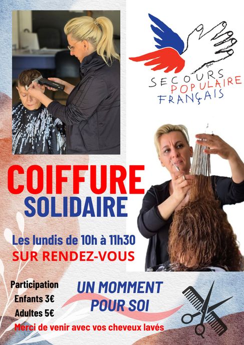 Le Secours populaire apporte secours et réconfort aux personnes en précarité. L’aide matérielle se conjugue aussi avec d’autres formes de soutien, comme cette action de coiffure solidaire, pour aider à se sentir « bien », et reprendre confiance en soi et dans l’avenir. C’est les lundis matins, sur rendez-vous, à l’antenne Nancy-Etoile. Merci à Juliana !