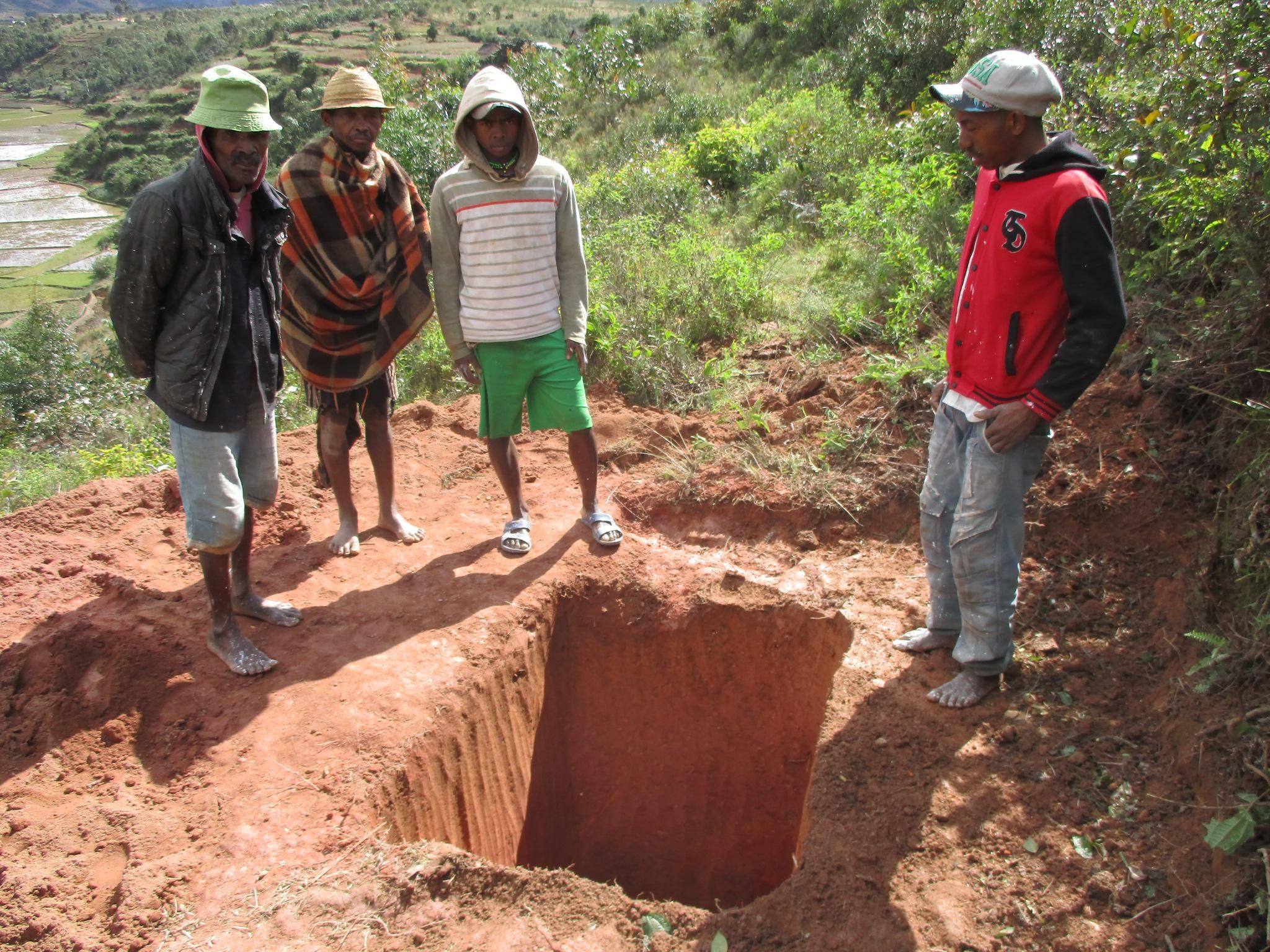 Les vacances ont pris fin. Les enfants ont commencé la nouvelle année scolaire début octobre. Les travaux à Ambatolahy, village parrainé par le secours populaire 54, avancent petit à petit. Les parents ont fini de peindre l’intérieur de l’école. Ils ont également terminé la fosse pour les latrines. Nous avons décidé de construire une latrine à dalle San plat. C’est idéal pour la propreté et la durabilité car elle est lavable et en béton.