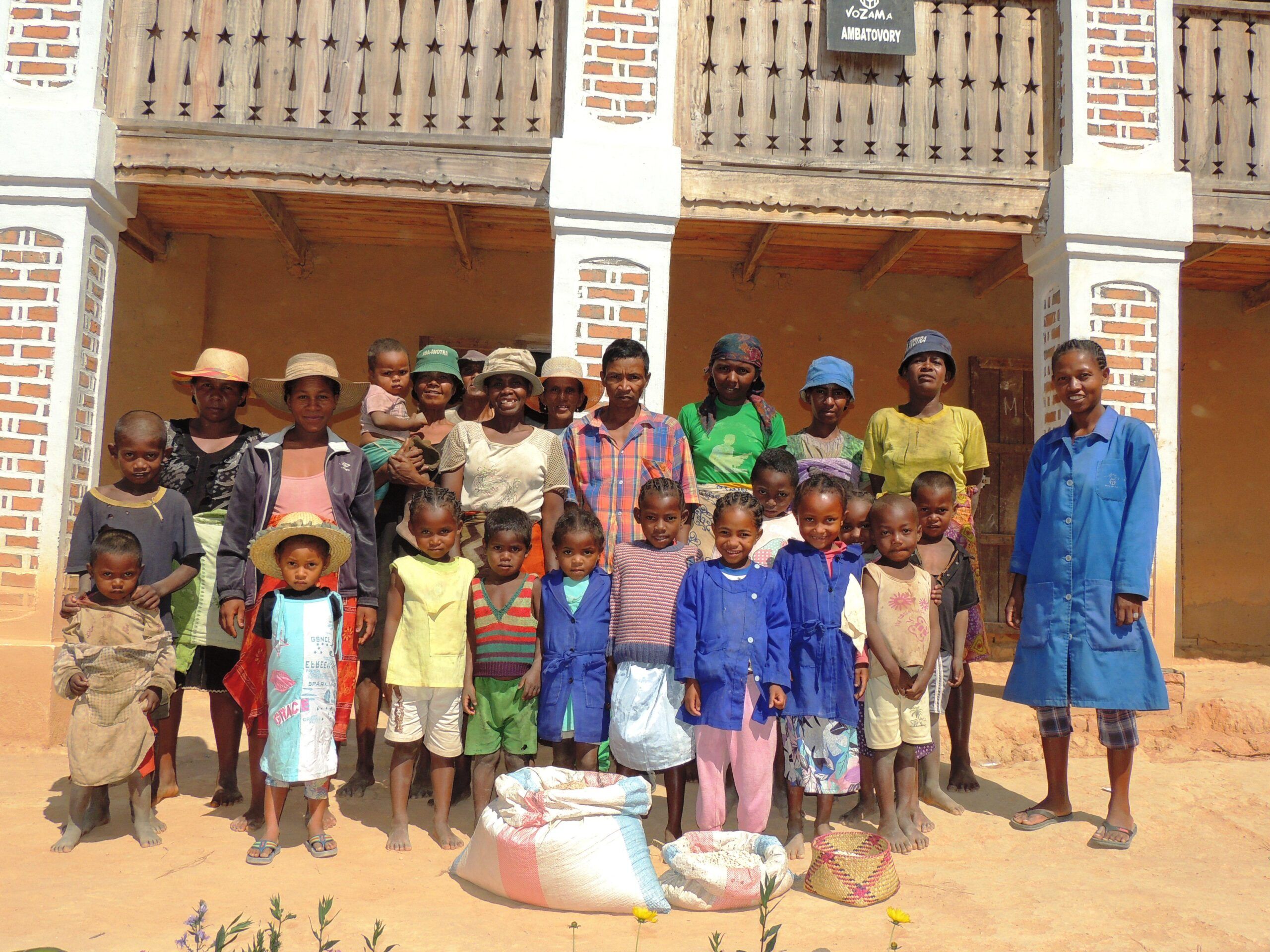 Grace au soutien du Secours Populaire Français de Meurthe et Moselle, 3 écoles ont bénéficié d’une nouvelle latrine. Comme l’Ecole d’Ambatolahy, les écoles d’Andranovory Antanjona et d’Ambalanonoka vont avoir leurs propres latrines. Des sacs de ciments, une dalle, une porte ont été donnés à chacun de ces postes. La construction des latrines, la maçonnerie, et la toiture sont à la charge des parents. 6 écoles ont reçu l’appui sur les cantines scolaires. Ce sont les écoles d’Ambatolahy, Akondro Est, Ankarandoha, Antsangy, Tsarahonenana et Ambatovory. Les parents issus de ces 8 écoles ont obtenu des semences de haricot. Chaque groupement de parents entretiendra une culture commune. Au mois de décembre, ils cultiveront les haricots, certains vendront leurs produits, d’autres les stockeront. Voici quelques photos de la distribution et de la cantine scolaire à Ambatovory.