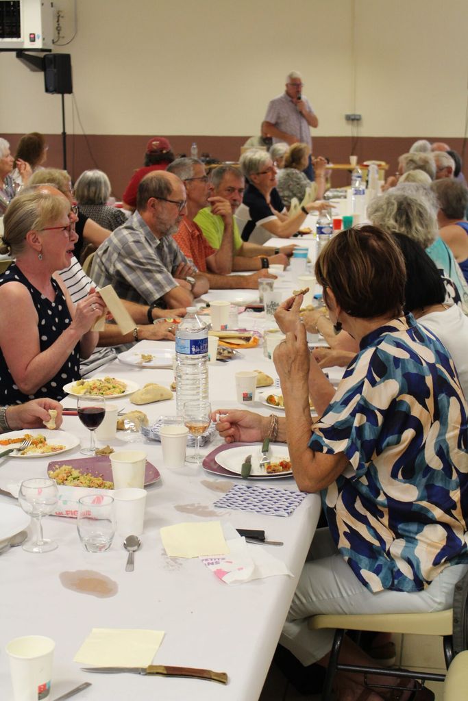 Après une remise en perspective des actions en cours, et les chaleureuses félicitations du Secrétaire général Philippe Gilain, tout le monde a participé à un repas imaginé « solidaire » : la fédération 54 du Secours populaire s’est occupé de fournir boissons et viandes, mais chaque participant devait ramener une entrée ou un dessert. En résultait une myriade de goûts !