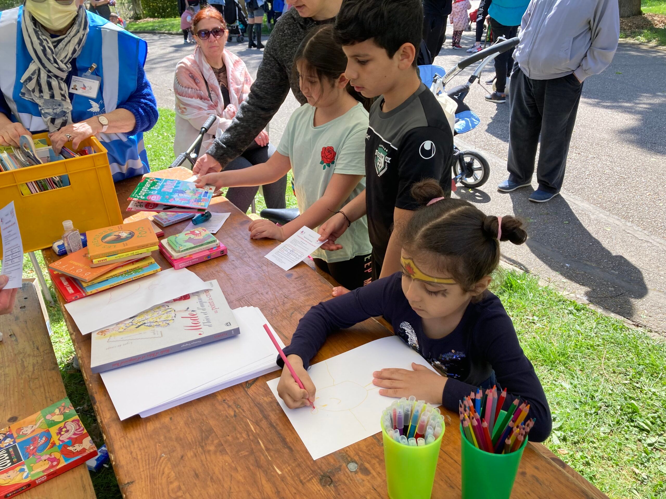 Ensuite avec leur permis ils ont pu participer à plusieurs stands tenus par les bénévoles du SPF54 : chamboule-tout, pêche à la ligne, dessins, et maquillage. Il y avait également un stand copains du monde présentant les actions que nous soutenons avec nos partenaires étrangers. 4 enfants s’y sont inscrit et pourront participer à des initiatives de solidarité.
