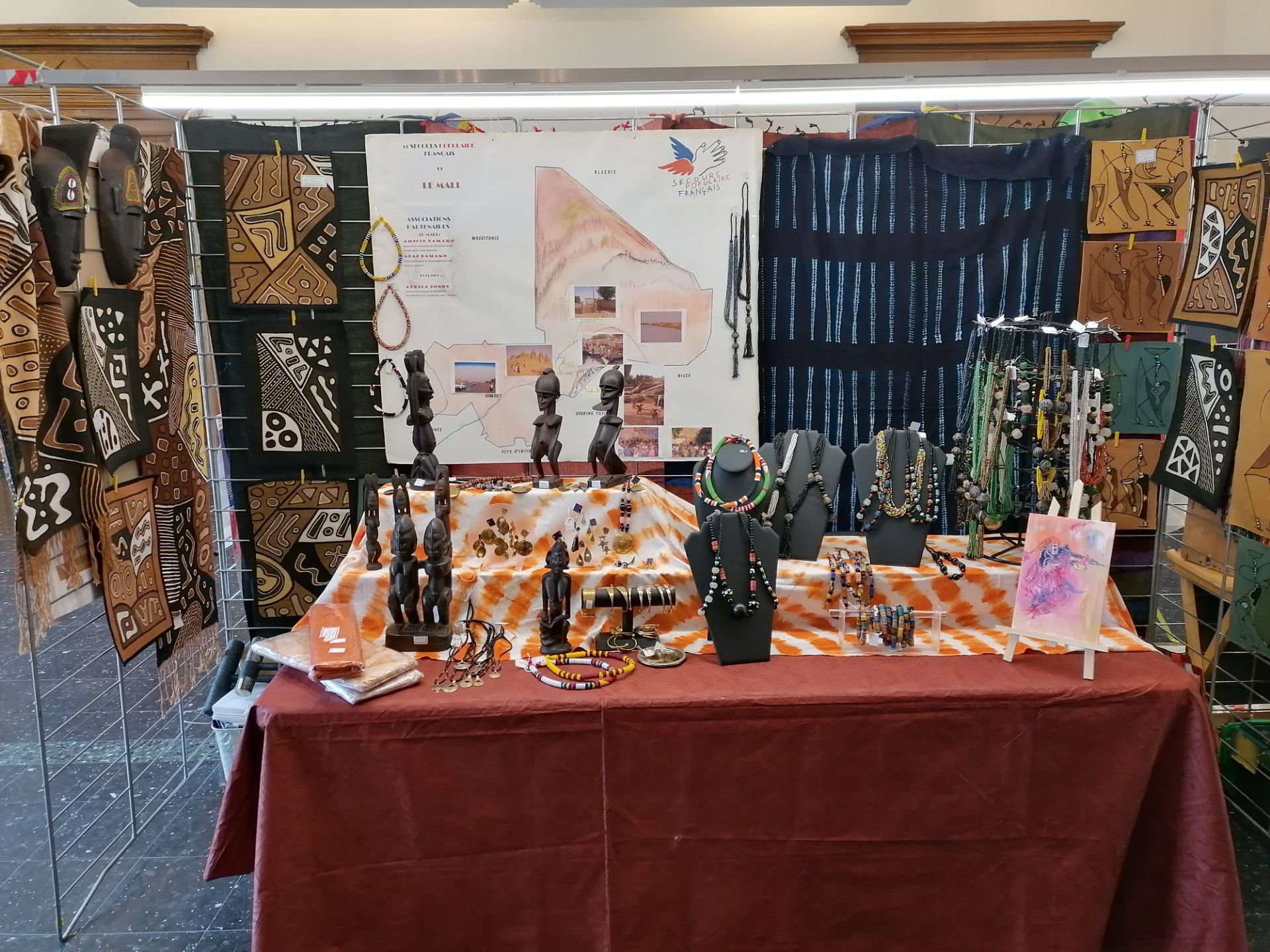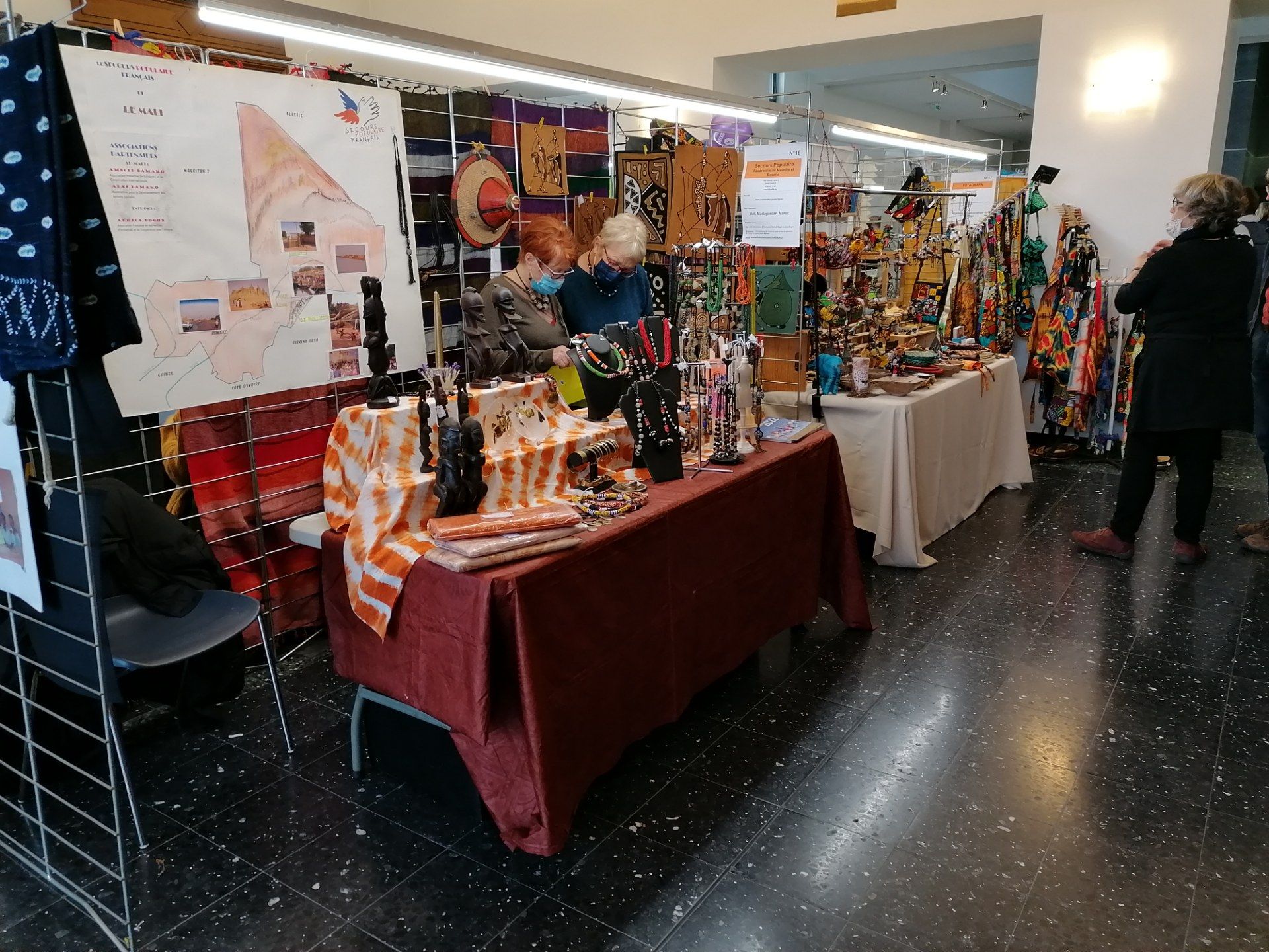 Ce week-end, les 14 et 15 décembre, nos amis Michèle et Michel mais aussi plusieurs bénévoles ont participé, comme chaque année, au marché du monde solidaire. Plus de 100 exposants venus des 4 coins du monde se sont regroupés au conseil départemental du 54 afin de proposer principalement de l’artisanat. Nos amis ont pu proposer de l’artisanat venu du pays Dogon au Mali. Pays et région du monde particulièrement en souffrance depuis qu’ils sont encerclé par des extrémistes religieux. Les aides du SPF54 sont principalement des aides financières afin que sur place nos amis puissent s’acheter de quoi se nourir.