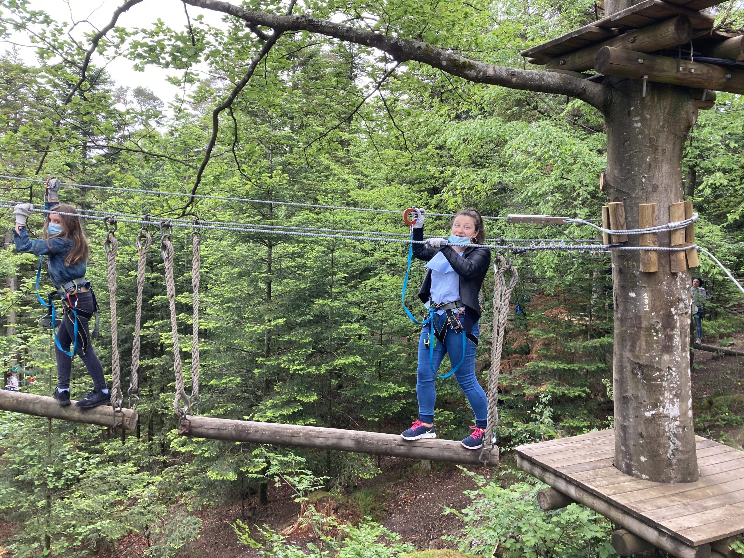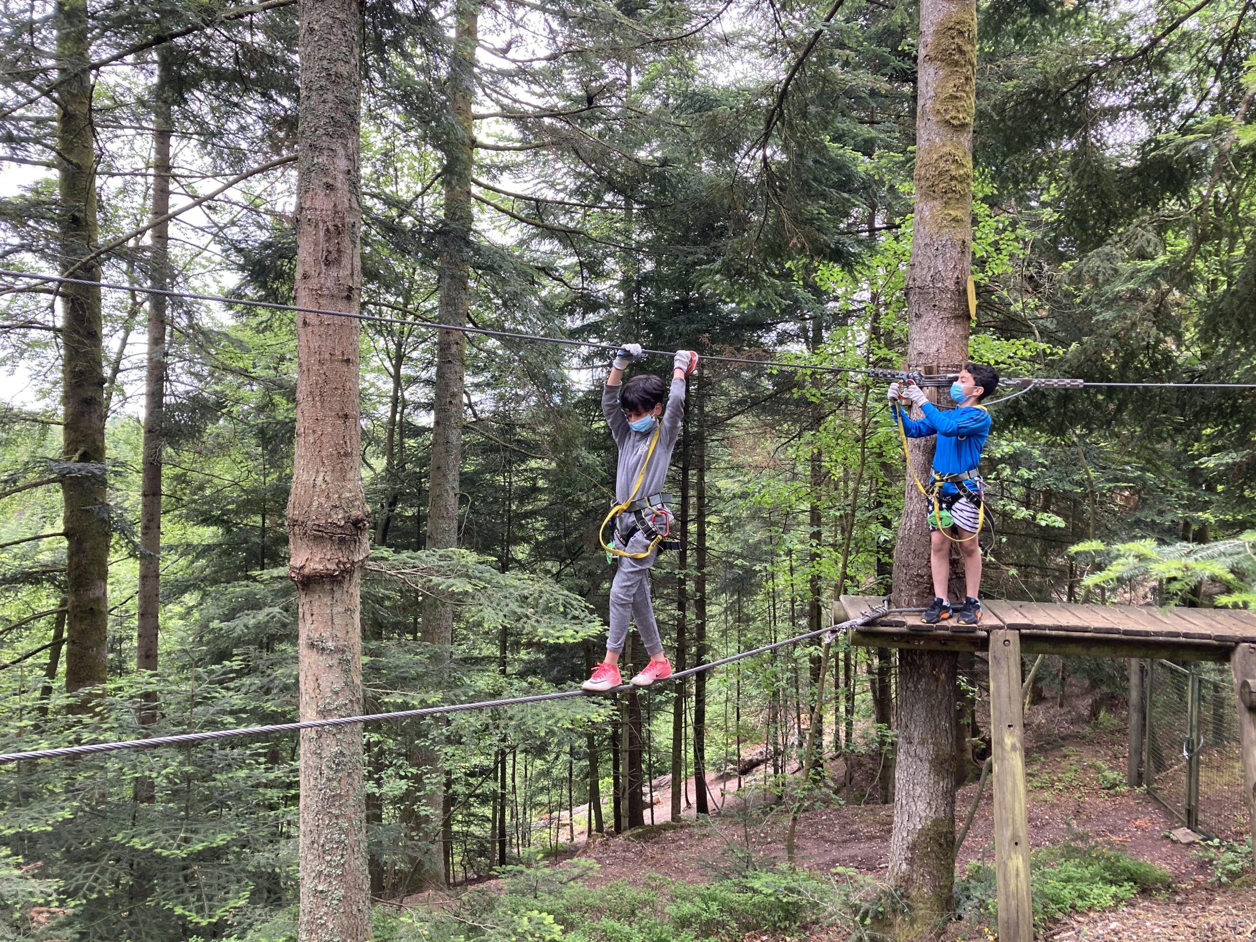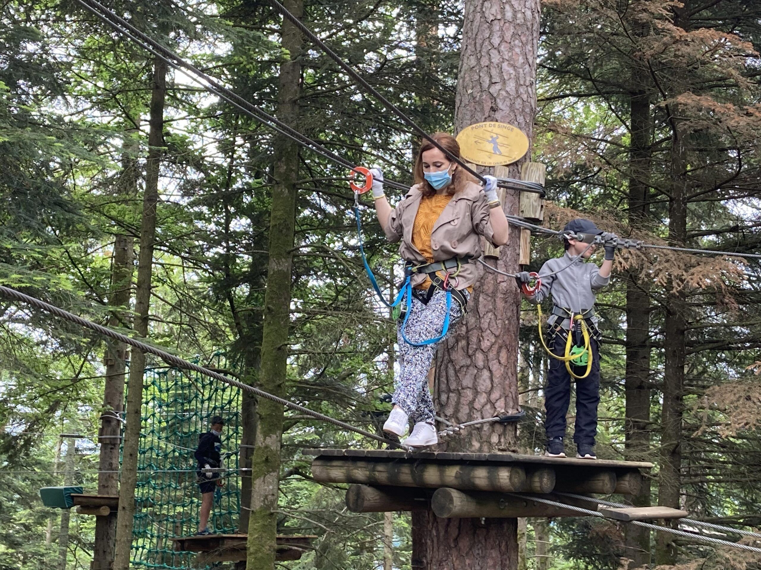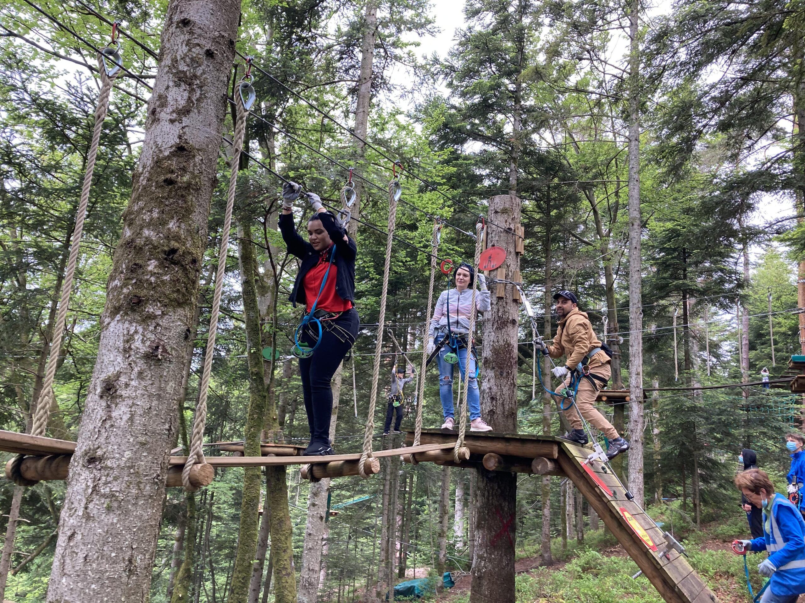 Le matin accrobranche et tyrolienne au dessus du lac et l’après-midi, sous la pluie, mini golf et kart à pédales.