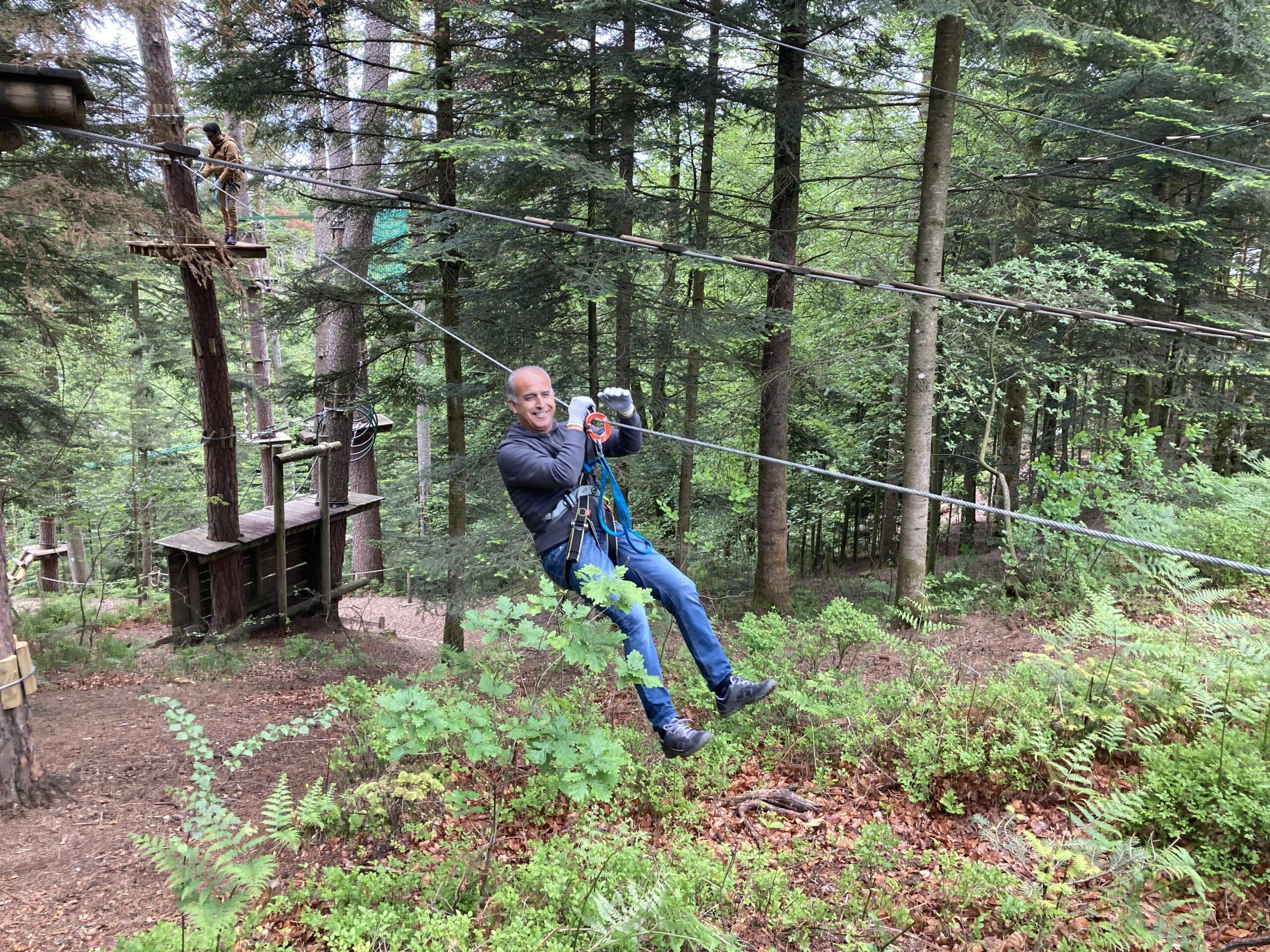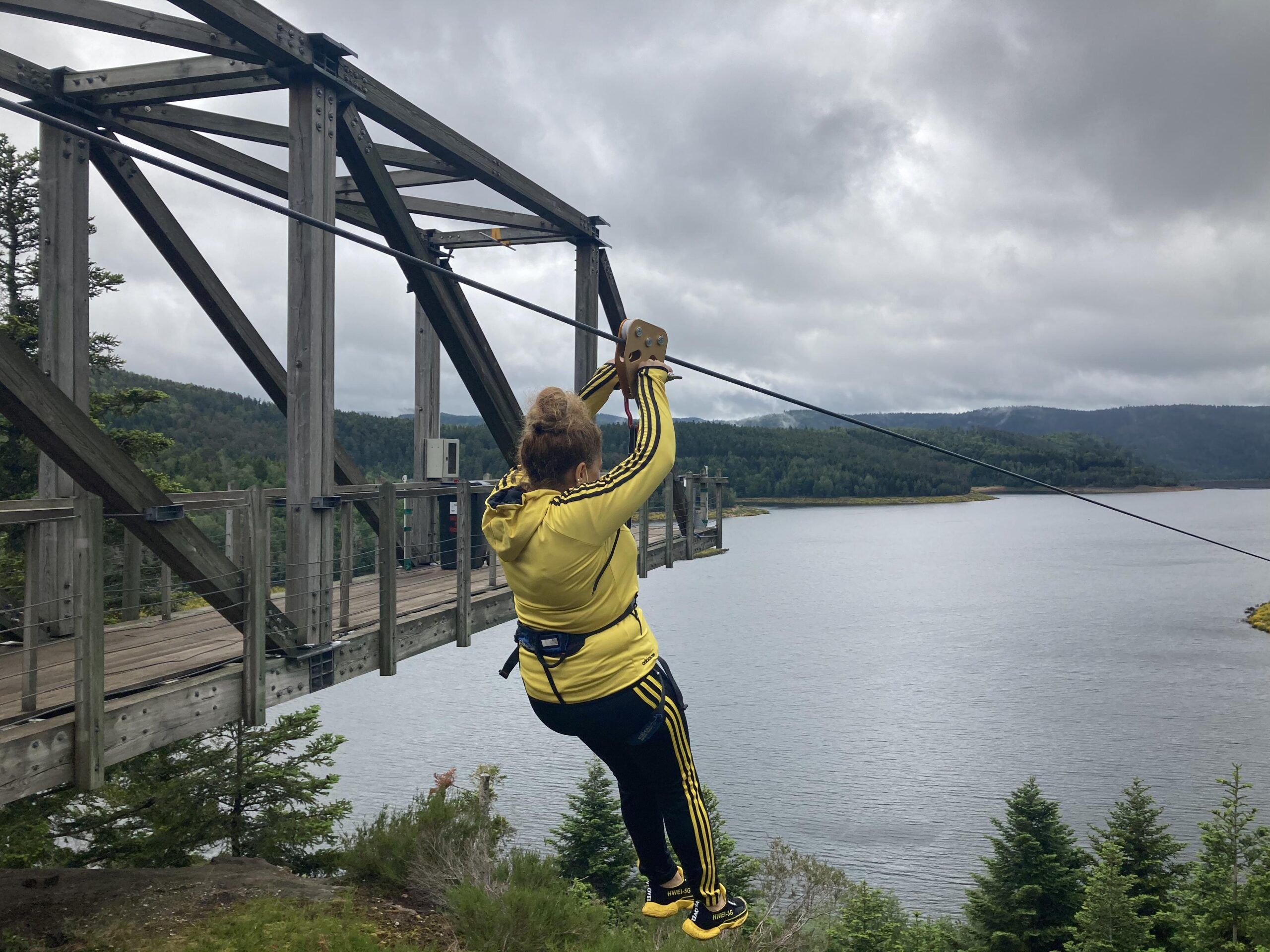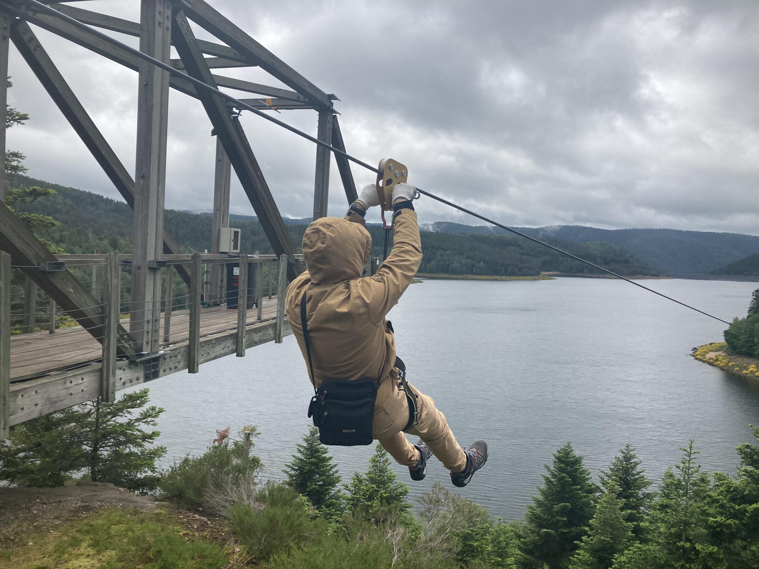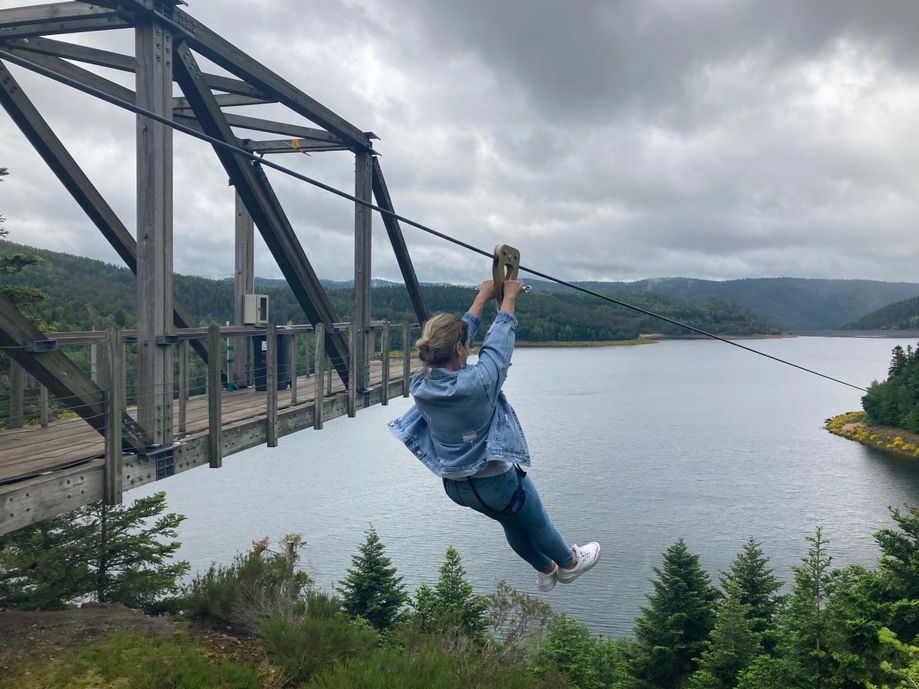 Le matin accrobranche et tyrolienne au dessus du lac et l’après-midi, sous la pluie, mini golf et kart à pédales.