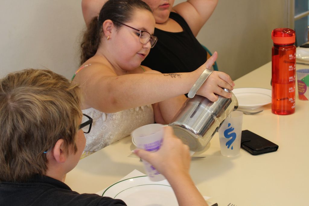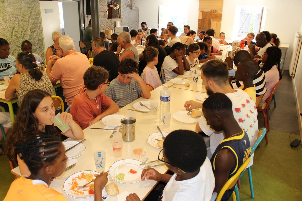 Premier repas tous ensemble, même si on est en altitude, la chaleur est là, il faut boire. Et ça tombe bien, les enfants vont réfléchir ensemble sur la thématique de l’eau, son inégalité dans sa répartition et distribution dans le monde, et une situation déjà précaire qui ne fait que s’aggraver.