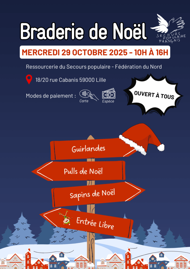 Le Secours populaire organise une braderie de Noël le mercredi 29 octobre 2025, à la fédération de Lille, de 10 h à 16 h.