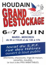 Grand destockage organisé par le Spf de Houdain, de 9h à 11h30 et de 14h à 17h.
