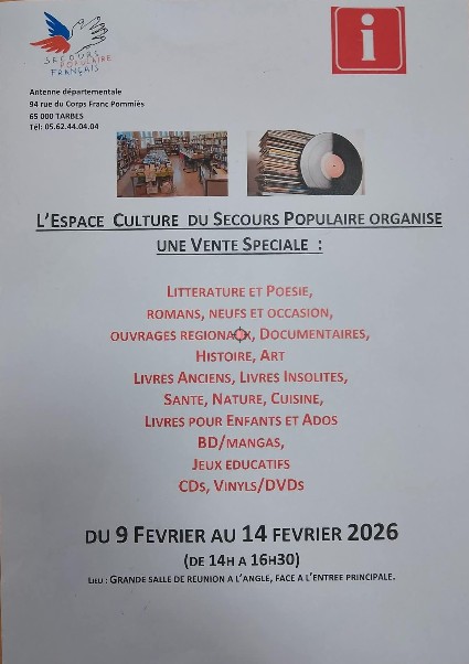 L'Espace Culture du Secours populaire organise une Vente Spéciale de livres, de BD, de CD, etc.