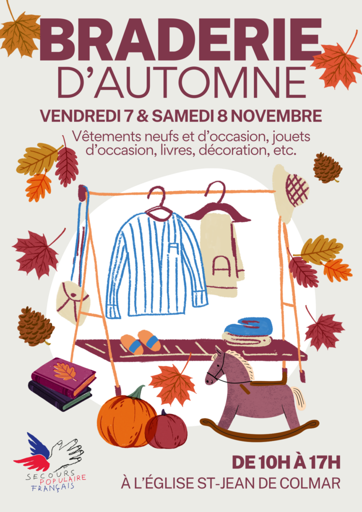 Les bénévoles du Secours populaire du Haut-Rhin ont le plaisir de vous inviter à leur braderie d’automne.