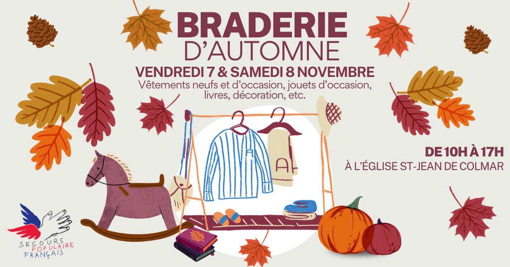 Les bénévoles du Secours populaire du Haut-Rhin ont le plaisir de vous inviter à leur braderie d’automne.